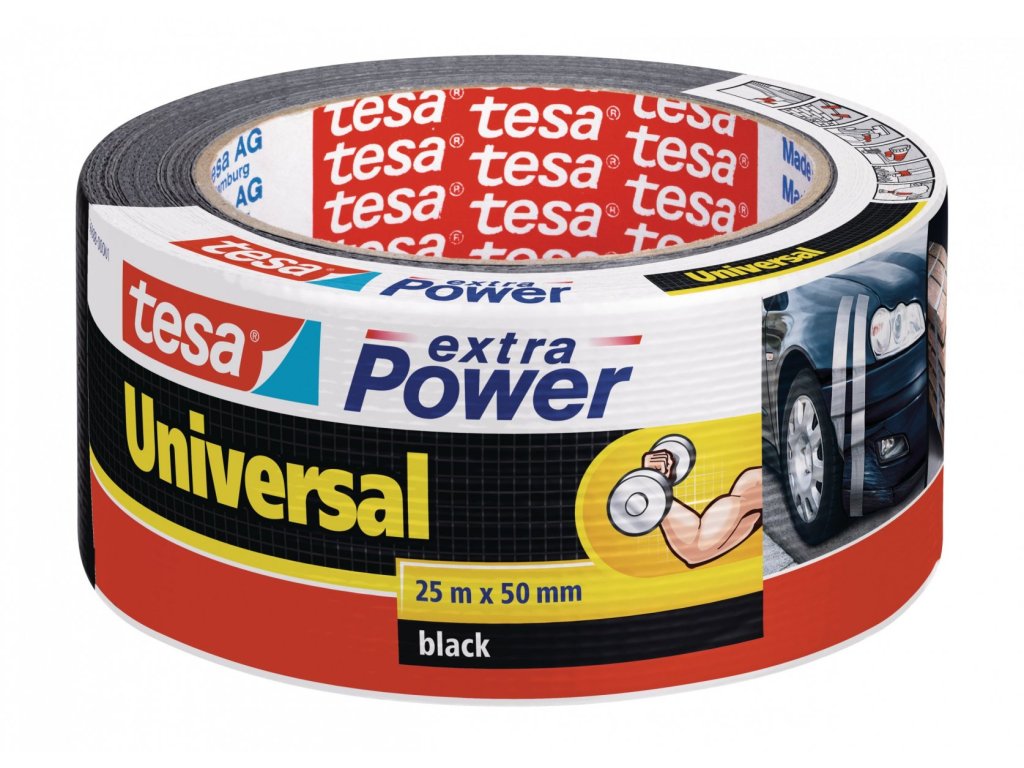 Opravná páska Extra Power Universal, textilní, silně lepivá, černá, 25m x 50mm