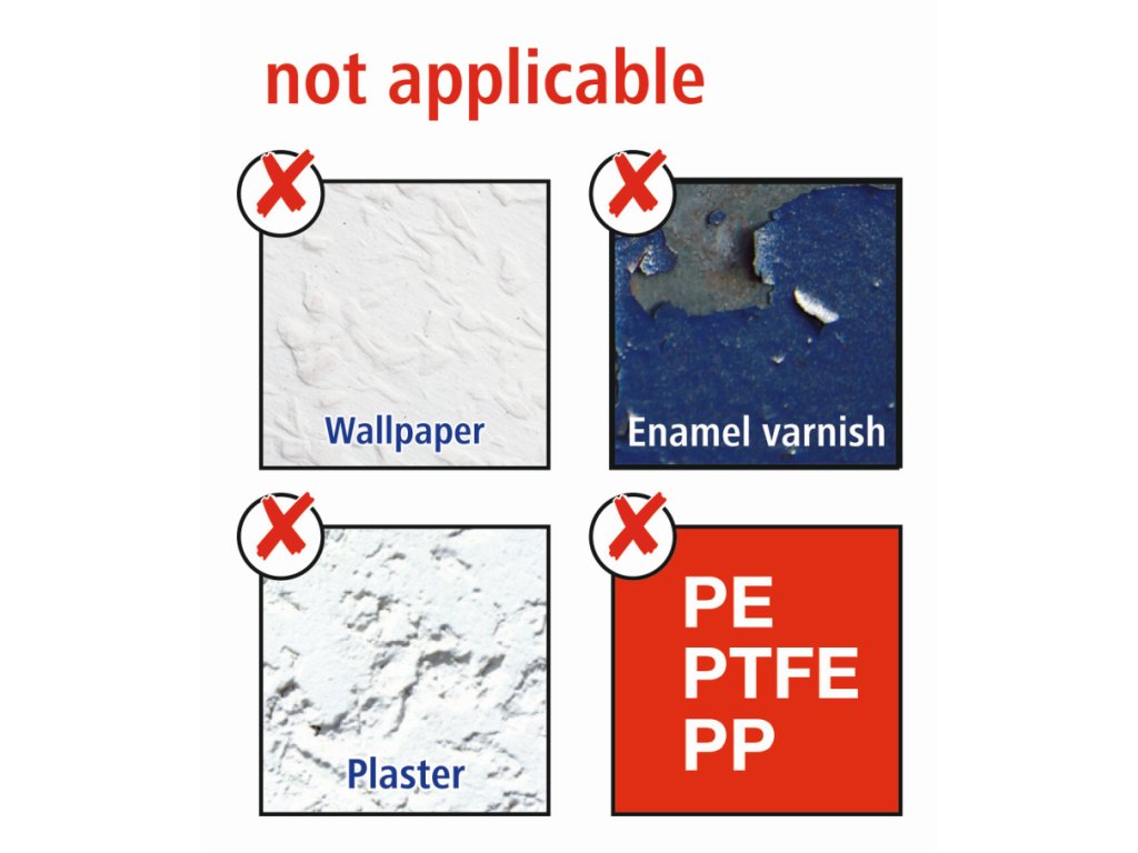 - Není vhodný na tapety, omítku a jiné nepřilnavé povrchy