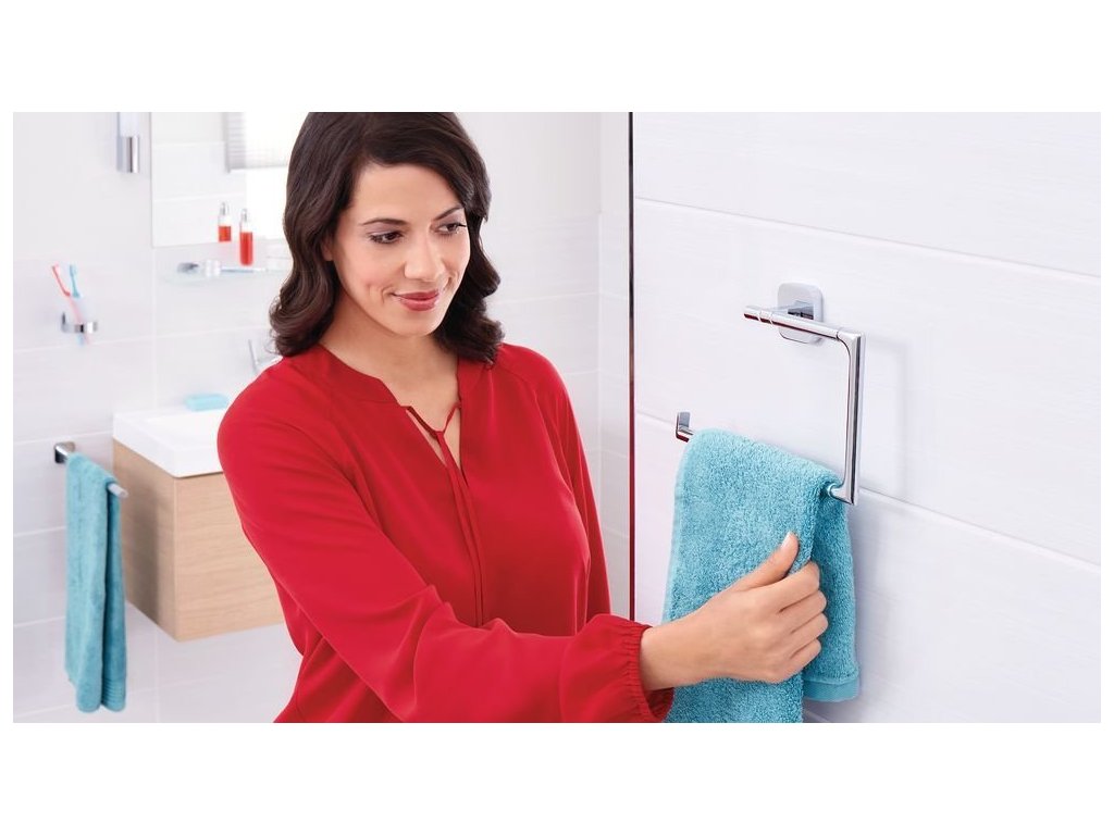 Elegantní a vytříbený dvojitý věšák Elegaant je samolepicí, snadno se připevňuje a bude ozdobou vaší koupelny.* Robustní dvojitý věšák s patentovanou technologií Power.Kit (univerzální montážní řešení pomocí lepidla)