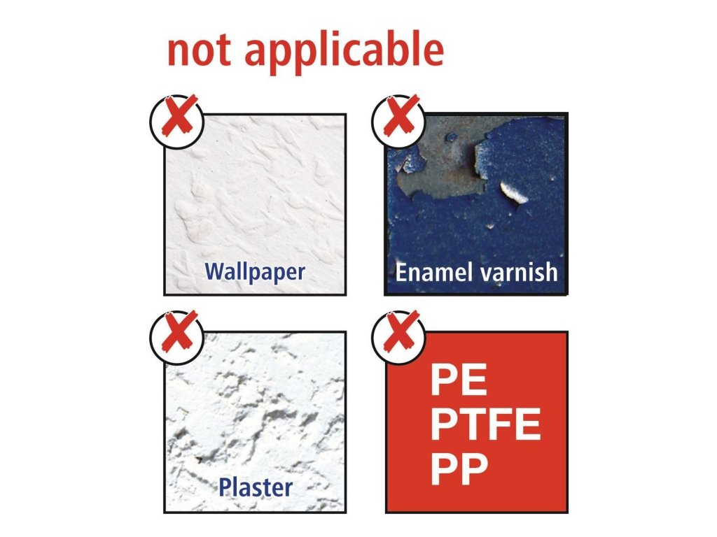 * Nefunguje na tapetách, omítce a jiných nepřilnavých površích