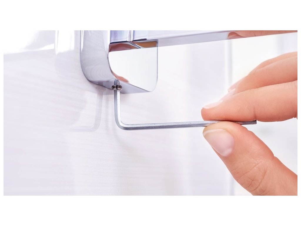 * Elegantní design, jemné hranaté provedení, pochromovaný kov s vysokým leskem, jemná čtvercová nástěnná podložka