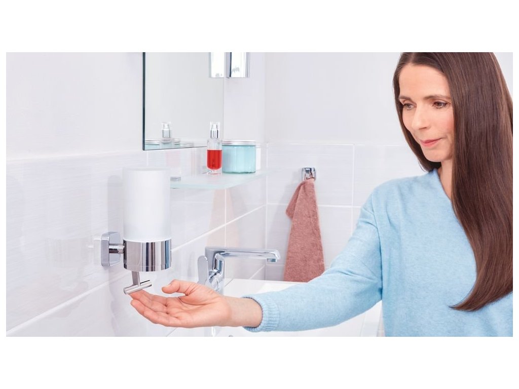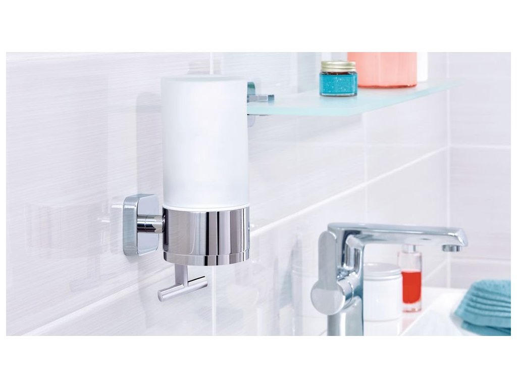 Jemný hranatý design a jakostní materiály činí z dávkovače mýdla Elegaant se snadnou montáží hvězdu vaší koupelny.* Robustní dávkovač mýdla s patentovanou technologií Power.Kit (univerzální montážní řešení pomocí lepidla)