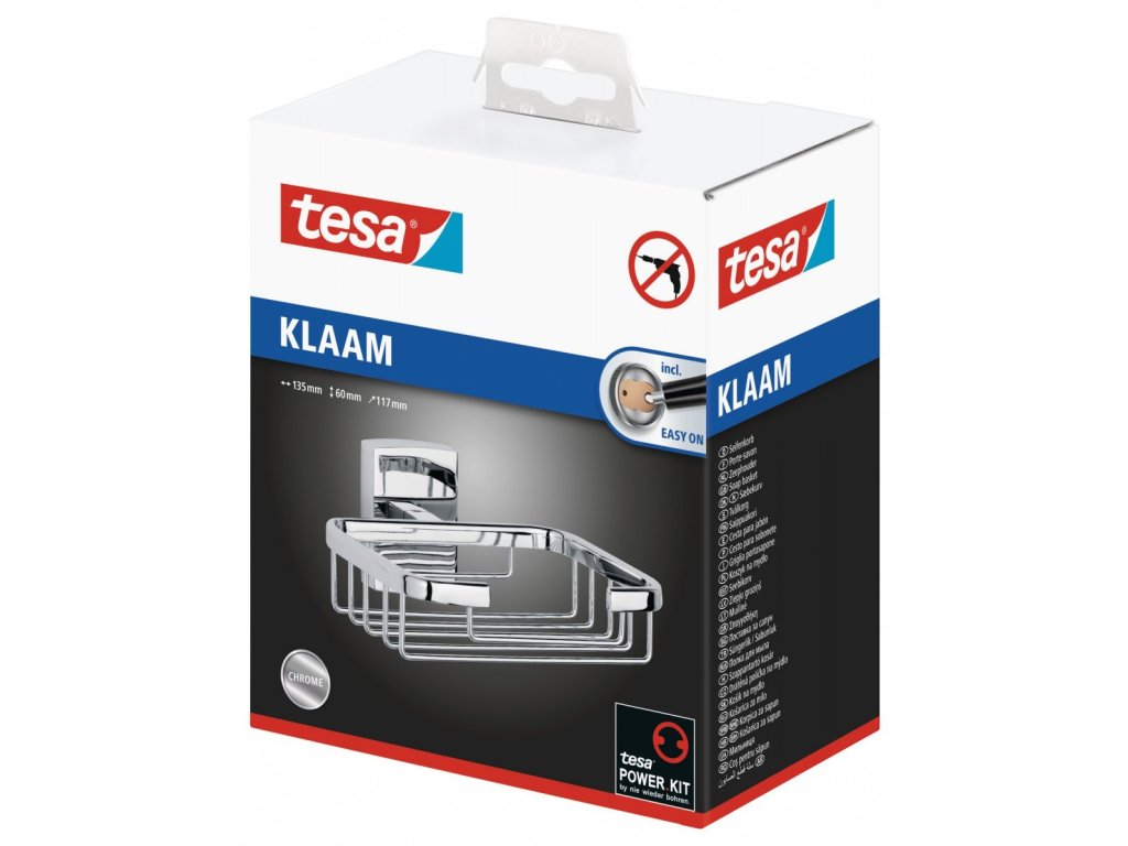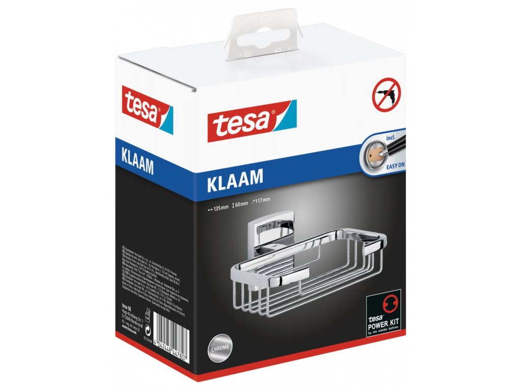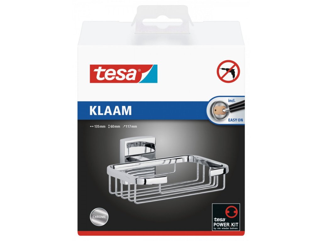 Hranatá polička na mýdlo Klaam je nádherným doplňkem, který má drátěné provedení umožňující průchod vody. Lesklý chromovaný povrch na kovovém těle je voděodolný a nerezový. Košík je připevněn pomocí lepení, které vyžaduje 12hodinové zaschnutí. Vrtání není použito, čímž odpadá poškození stěn a obkladů. Košík můžete také kdykoli rychle a beze stopy demontovat. Po demontáži ho lze pohodlně znovu použít s novým adaptérem BK20 na jiném místě.* Polička na mýdlo s patentovanou technologií Power.Kit (univerzální montážní řešení pomocí lepidla)