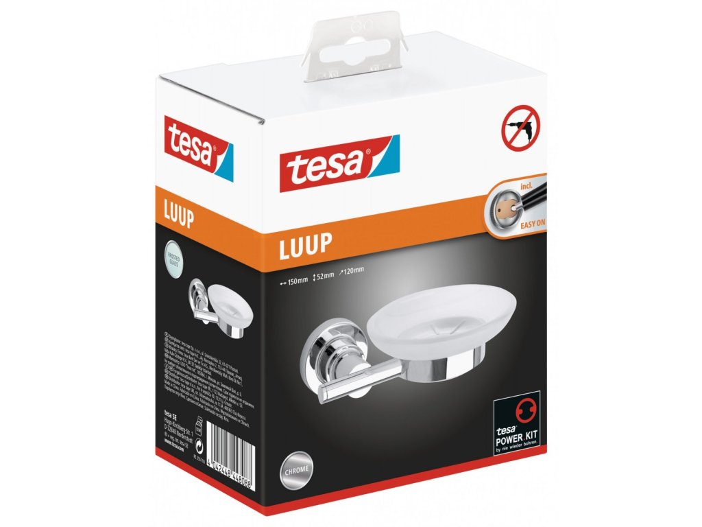 Zaoblený držák na mýdlo Luup poskytuje stylové umístění mýdla, aby bylo připraveno pro každodenní použití. Vysoce lesklý chromovaný povrch na konzole je voděodolný a nerezový. Krásně doplňuje saténové sklo mýdlenky. Držák nevyžaduje pro montáž vrtání, místo toho se používá lepení. Lepidlo zaschne za 12 hodin. Stěny či obklady zůstanou nepoškozené. Dle svého uvážení můžete držák rychle a beze stopy demontovat. S novým adaptérem BK20 je rovněž hračkou ho připevnit na jiné místo.