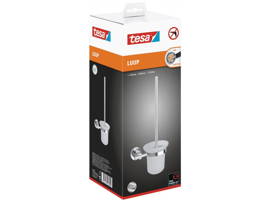 Zaoblená WC štětka Luup nabízí elegantní design, který bude zcela jistě ve vaší koupelně přitahovat pozornost. Nádherná a přitažlivá je kombinace saténového skla a lesklého chromování. Skleněnou nádobku lze vyjmout pro snadné čištění, hlavici štětky lze v případě potřeby vyměnit. WC štětka je připevněna s použitím lepení namísto vrtání. Proto zůstanou stěny a obklady nepoškozené. Lepidlo zasychá za 12 hodin. Demontovat ji lze rychle, beze stop a kdykoli se vám zachce. S novým adaptérem BK20 ji můžete také snadno použít na jiném místě.* Nástěnná WC štětka s patentovanou technologií Power.Kit (univerzální montážní řešení pomocí lepidla)