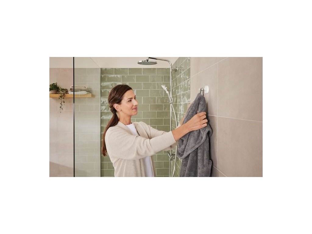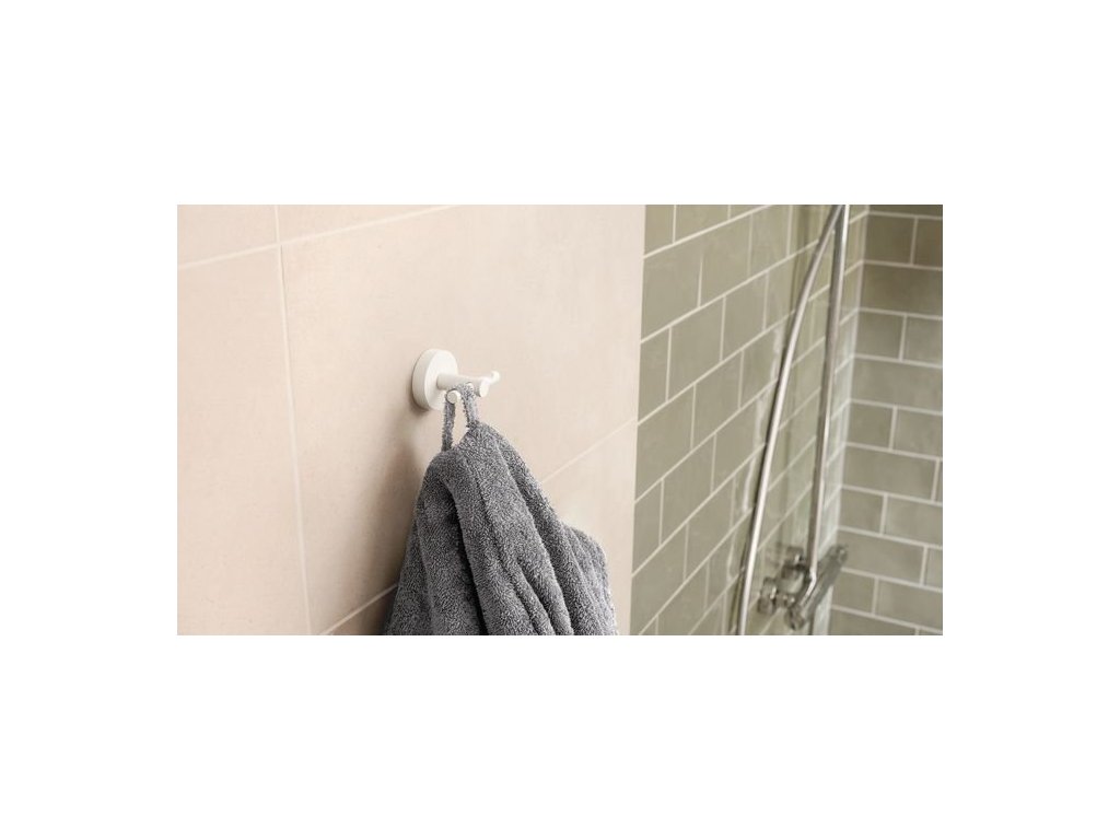 Místo pro župan a elegantní dekorativní prvek v koupelně. Moderní matně bílé provedení a minimalistický design. Harmonický doplněk současných trendů v domácí výbavě, ať už máte v oblibě industriální styl, skandinávský design, nebo neutrální klasiku. Práškově lakovaný držák lze snadno připevnit na zeď bez vrtání pomocí lepicího řešení . Háček se navíc hodí i pro zavěšení větších sprchových ručníků. Nepotřebujete manuální dovednosti, nemusíte se bát nepořádku ani vrtání.Doplňkové parametry